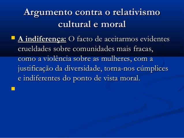 relativismo teremos de aceitar procedimentos racistas e práticas de crueldade