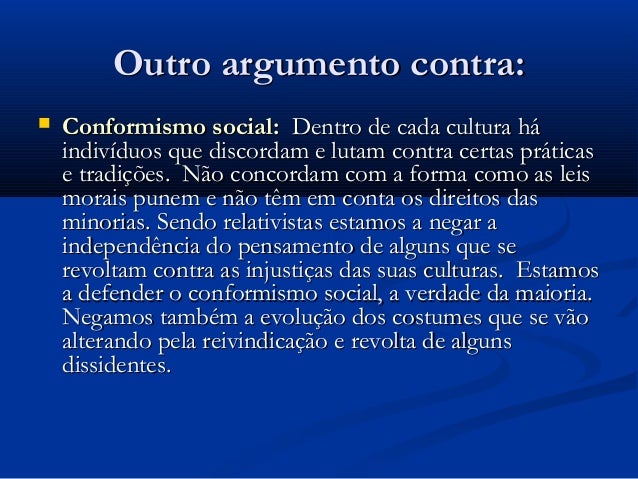 argumento contra: Conformismo social: Dentro de cada cultura há indivíduos que discordam e lutam
