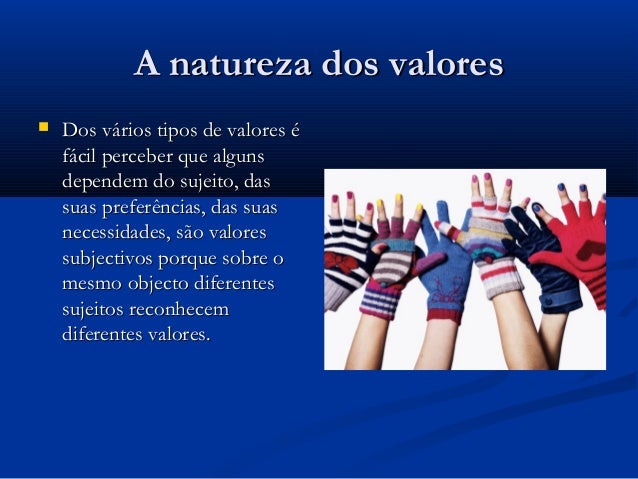 Dos vários tipos de valores é fácil perceber que alguns dependem do sujeito,