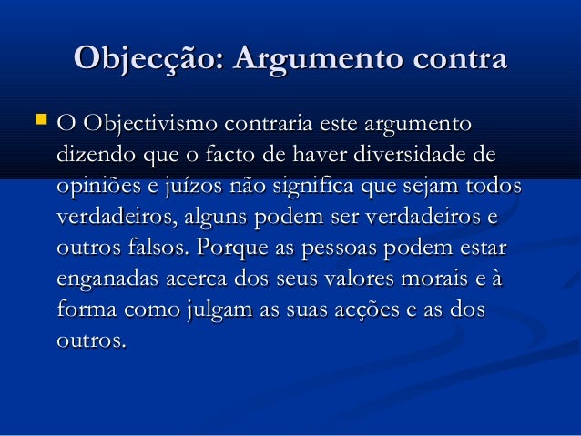 Objectivismo contraria este argumento dizendo que o facto de haver diversidade