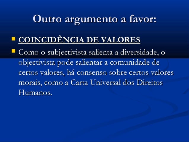 argumento a favor: COINCIDÊNCIA DE VALORES