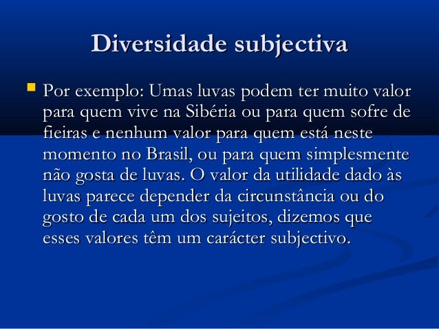 das suas preferências, das suas necessidades, são valores subjetivos porque