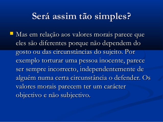 certa circunstância o defender. Os valores morais parecem ter um carácter
