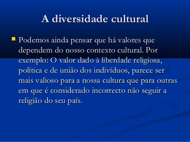Podemos ainda pensar que há valores que dependem do nosso contexto cultural.